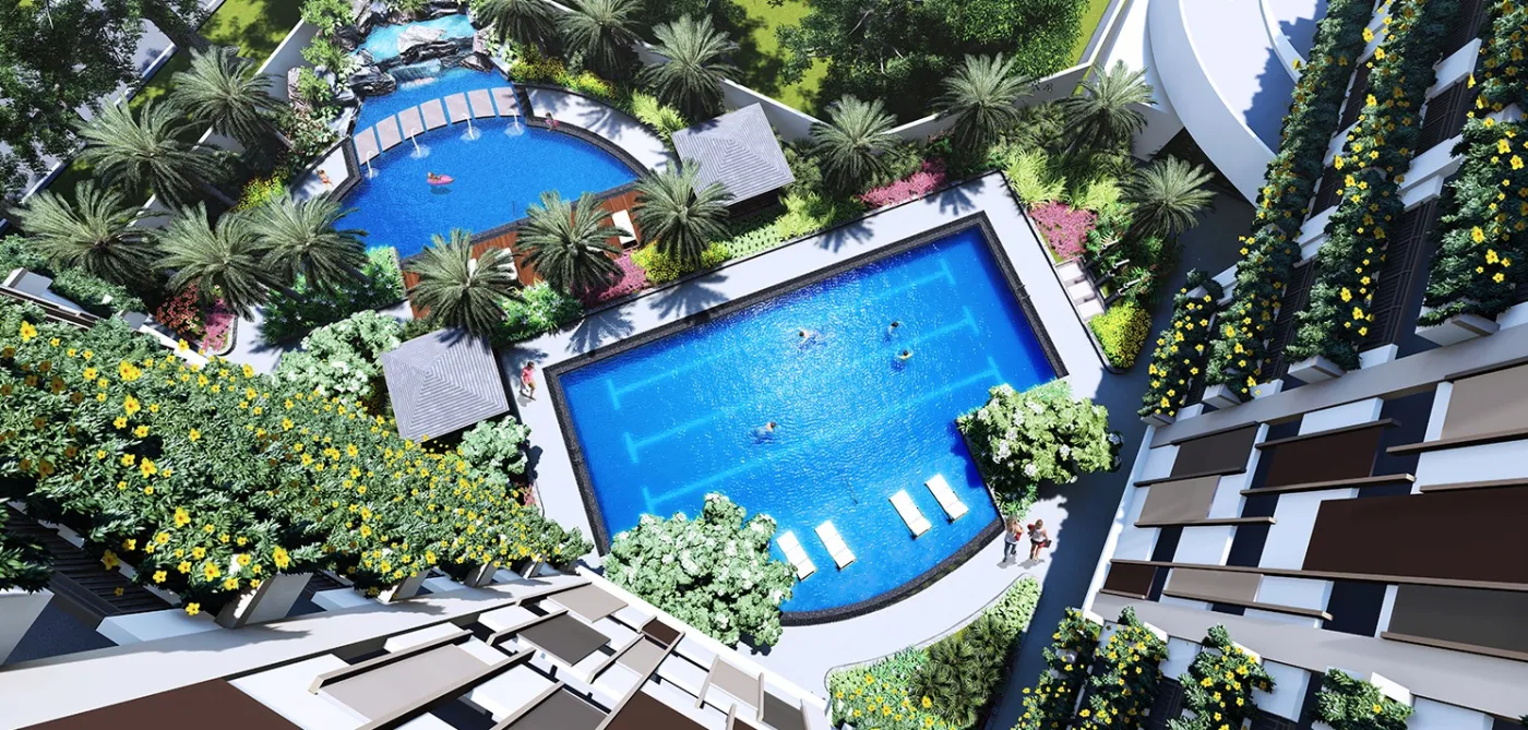 Find an impressive collection of 12 active play and 23 passive leisure amenities spread across a one-hectare expanse. To relax and invigorate, choose from its unique amenities like the sauna, skating rink, open playfield, exercise station, Tai-Chi grounds, and pool with interactive waterplay.